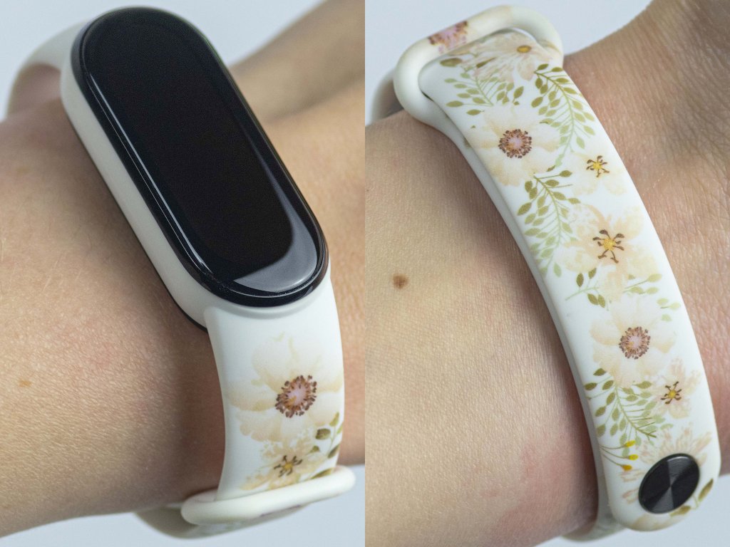 Řemínky pro vás vyrábíme v Ústí nad Labem. Od namíchání barev, přes výrobu samotného řemínku až po finální potisk, který lze i na přání. Náhradní náramek Mi band 3/4/5/6/7 Bílá louka