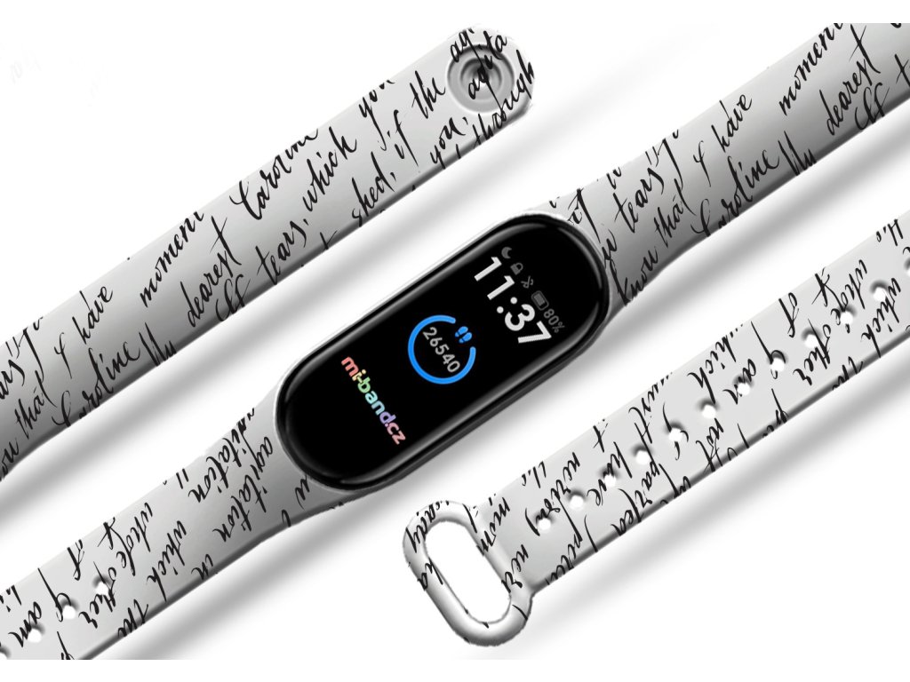 Díky vlastní výrobě i tiskům máme buď skladem nebo vyrobíme a expedujeme obratem. Řemínky pro vás pečlivě a s láskou zabalíme.  Náhradní náramek Mi band 3/4/5/6/7 Caroline
