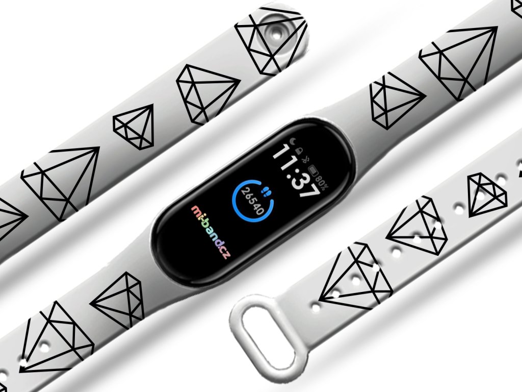 Řemínky pro vás vyrábíme v Ústí nad Labem. Od namíchání barev, přes výrobu samotného řemínku až po finální potisk, který lze i na přání. Náhradní náramek Mi band 3/4/5/6/7 Diamanty