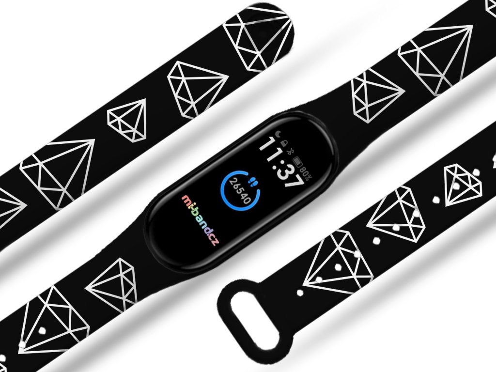 Díky vlastní výrobě i tiskům máme buď skladem nebo vyrobíme a expedujeme obratem. Řemínky pro vás pečlivě a s láskou zabalíme.  Náhradní náramek Mi band 3/4/5/6/7 Diamanty