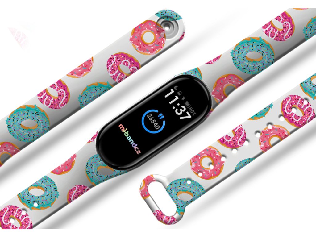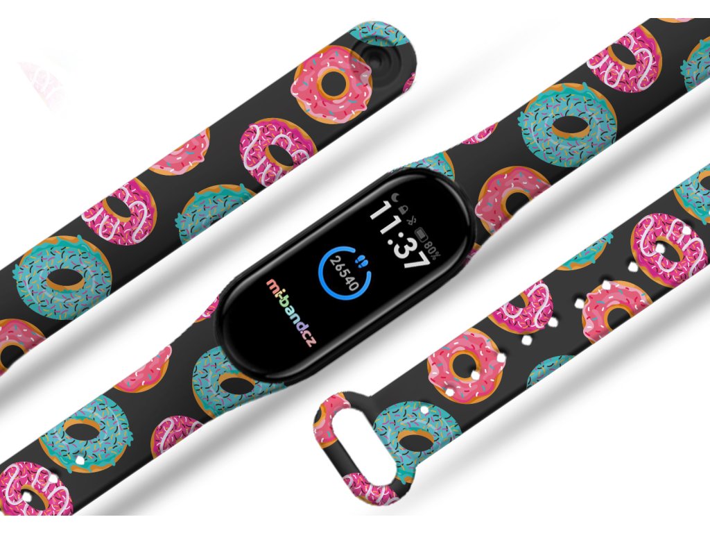 Díky vlastní výrobě i tiskům máme buď skladem nebo vyrobíme a expedujeme obratem. Řemínky pro vás pečlivě a s láskou zabalíme.  Náhradní náramek Mi band 3/4/5/6/7 Donut
