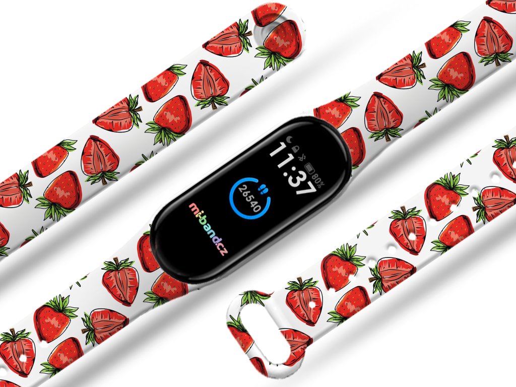 Díky vlastní výrobě i tiskům máme buď skladem nebo vyrobíme a expedujeme obratem. Řemínky pro vás pečlivě a s láskou zabalíme.  Náhradní náramek Mi band 3/4/5/6/7 Jahody