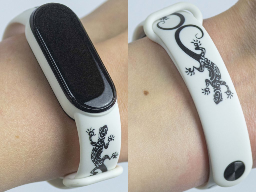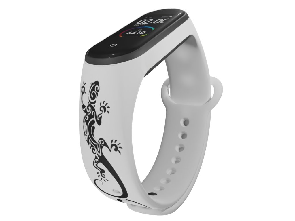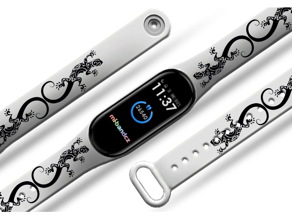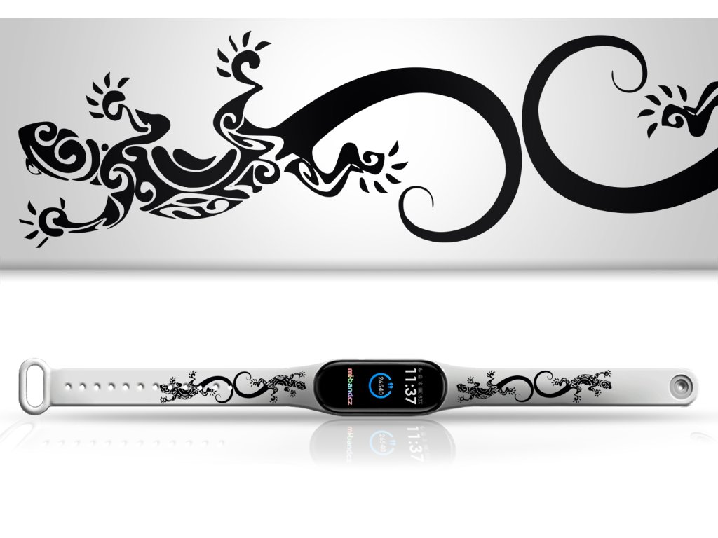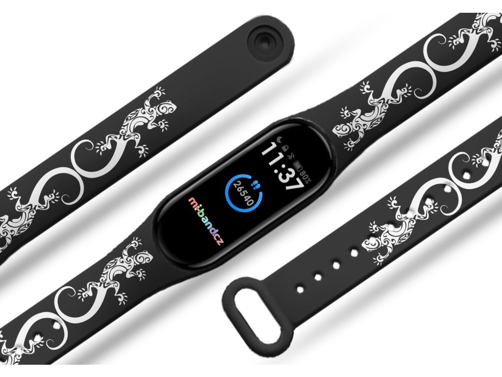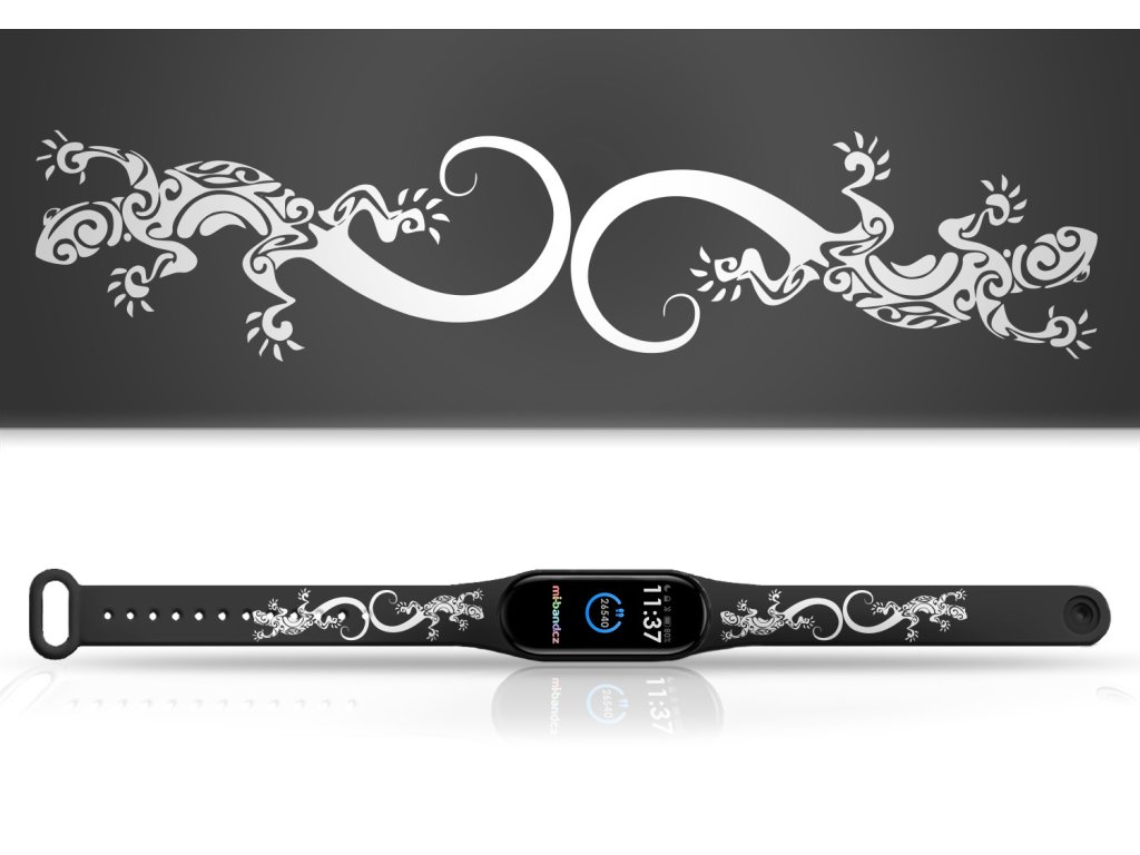 Bílý náhradní náramek pro Xiaomi Mi band s potiskem tribal ještěrek. Bájná stvoření pro tvé zápěstí. Kdo by neměl rád rychlé malé potvůrky. Můžeš je nosit pořád při sobě a to díky náramku pro Mi Band 3, 4, 5, 6 a 7.