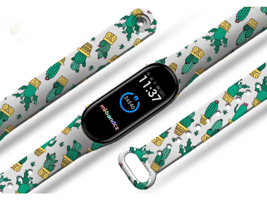 Díky vlastní výrobě i tiskům máme buď skladem nebo vyrobíme a expedujeme obratem. Řemínky pro vás pečlivě a s láskou zabalíme.  Náhradní náramek Mi band 3/4/5/6/7 Kaktus