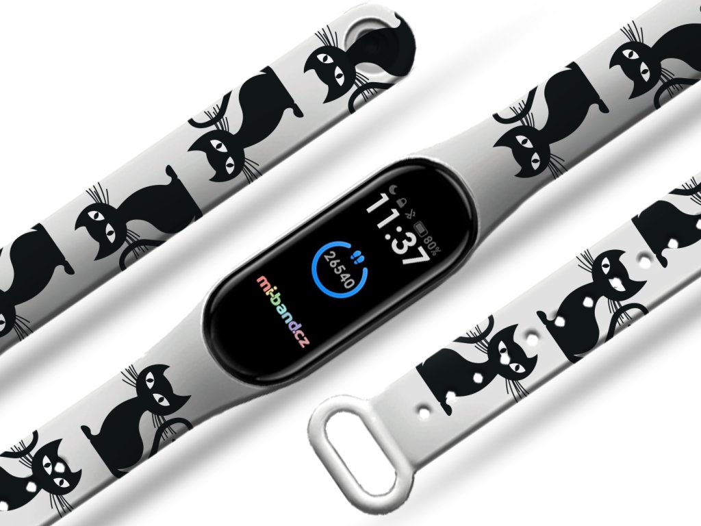 Díky vlastní výrobě i tiskům máme buď skladem nebo vyrobíme a expedujeme obratem. Řemínky pro vás pečlivě a s láskou zabalíme.  Náhradní náramek Mi band 3/4/5/6/7 Kočka