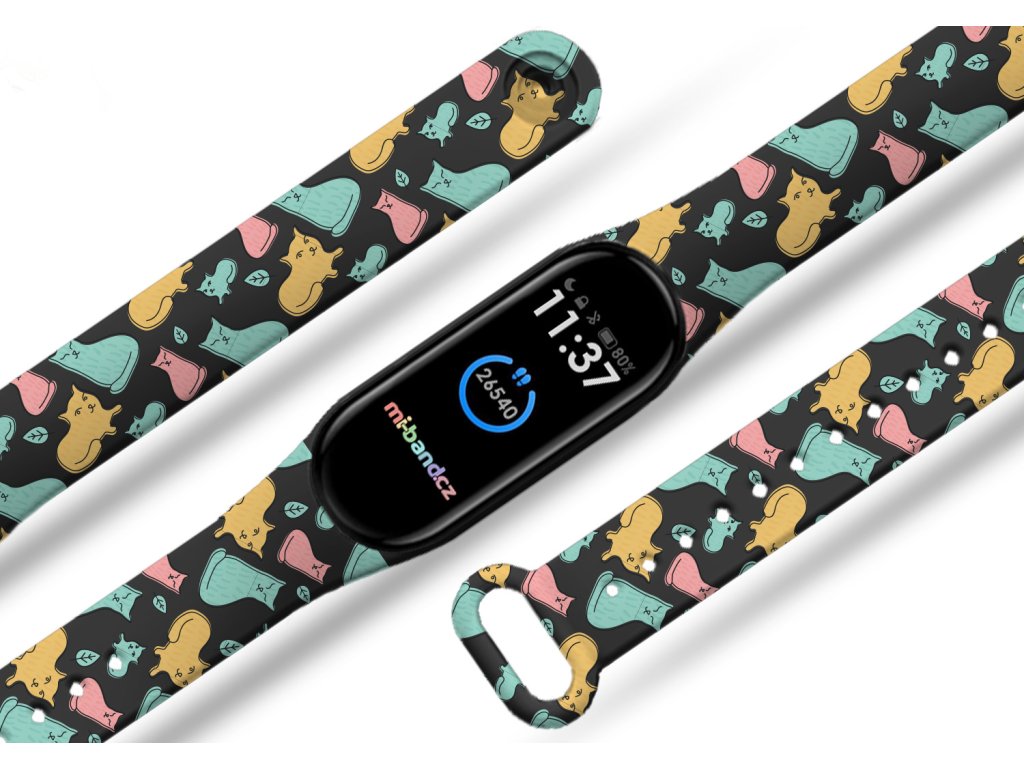 Díky vlastní výrobě i tiskům máme buď skladem nebo vyrobíme a expedujeme obratem. Řemínky pro vás pečlivě a s láskou zabalíme.  Náhradní náramek Mi band 3/4/5/6/7 Kočky