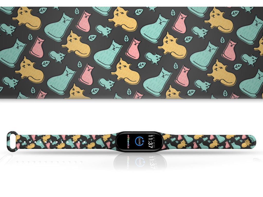 Řemínky pro vás vyrábíme v Ústí nad Labem. Od namíchání barev, přes výrobu samotného řemínku až po finální potisk, který lze i na přání. Náhradní náramek Mi band 3/4/5/6/7 Kočky
