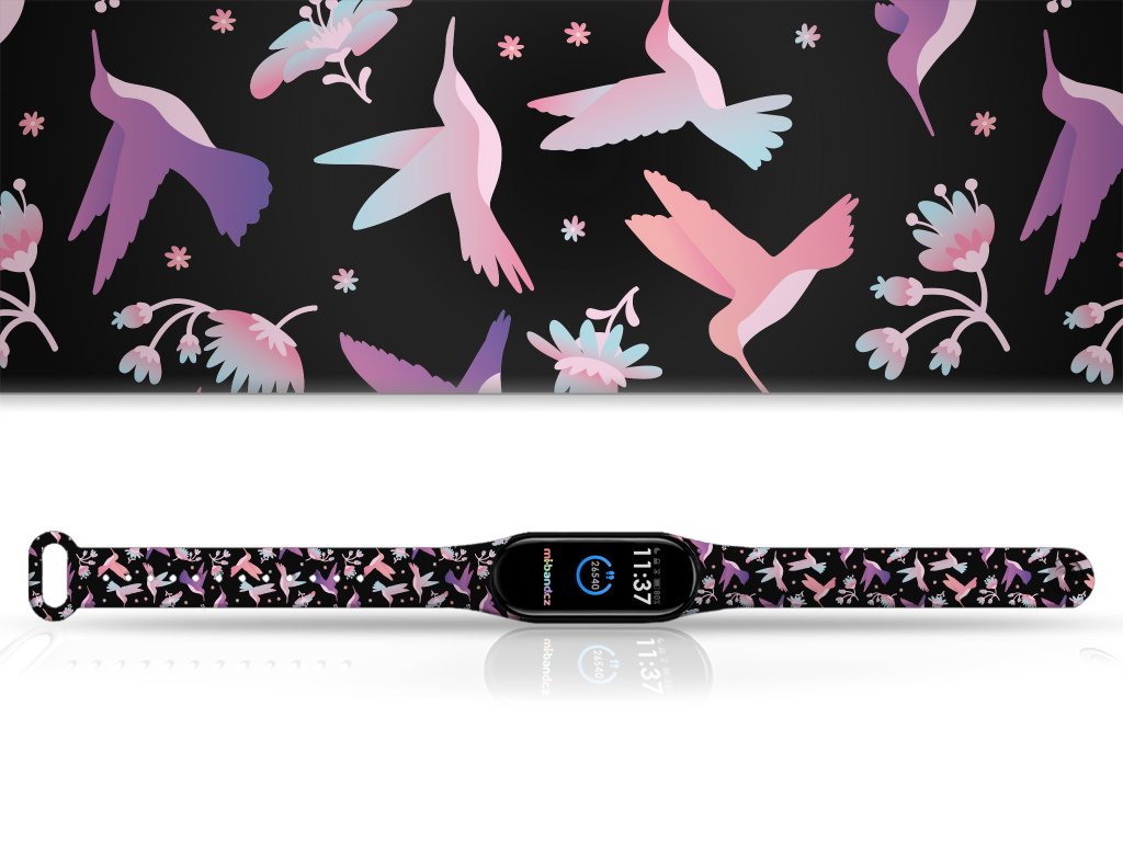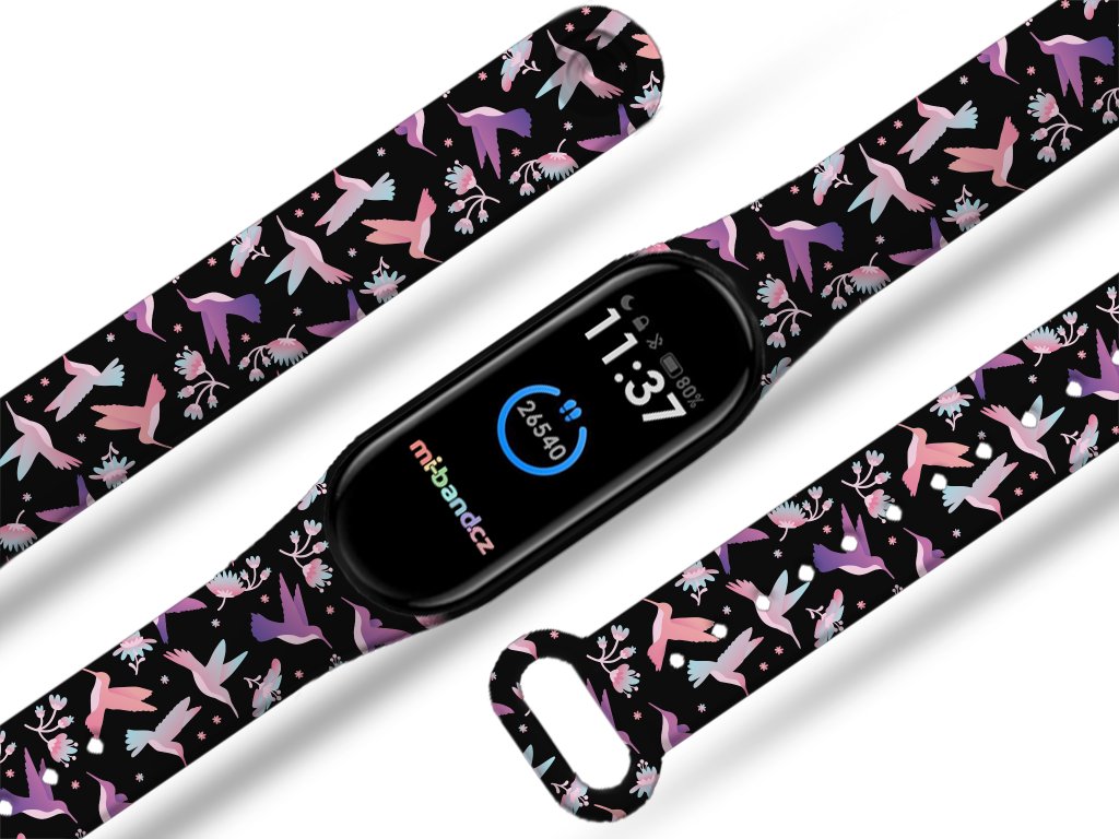 Bílý náhradní náramek pro Xiaomi Mi band s potiskem ptáčků kolibříků. Jsou malincí a přesto neskutečně pracovití. Řeč je o kolibřících, kterým už se sbíhají chutě na nejlepší květy v okolí. Podívej na tento náramek pro Mi band 3, 4, 5, 6 a 7.