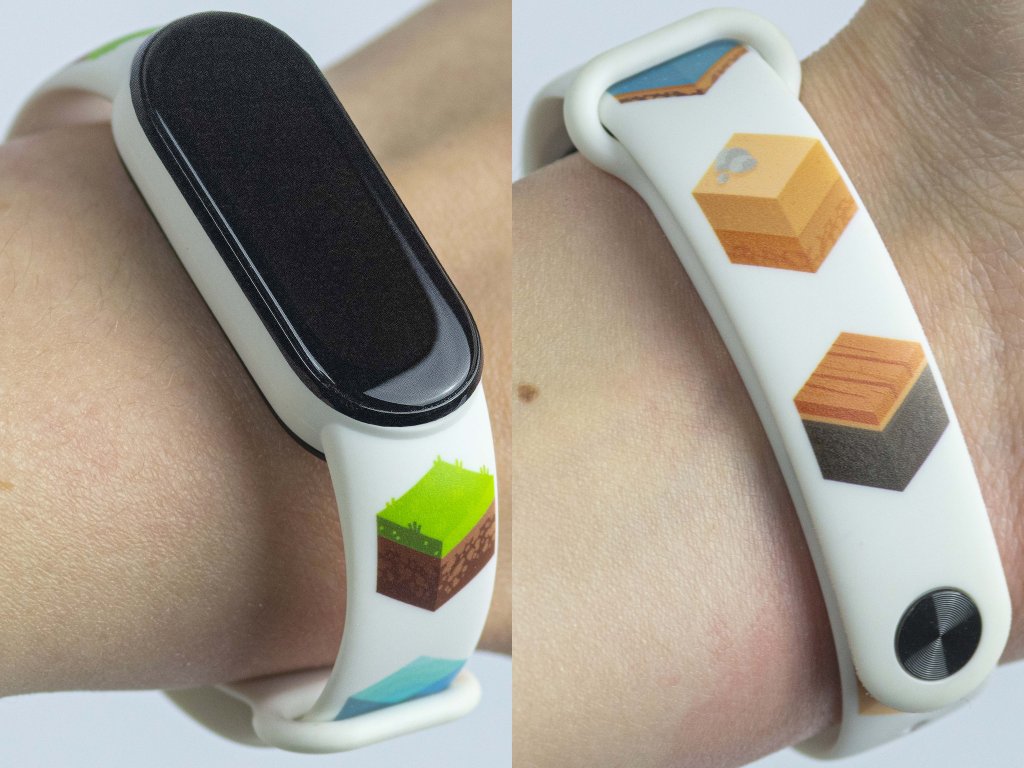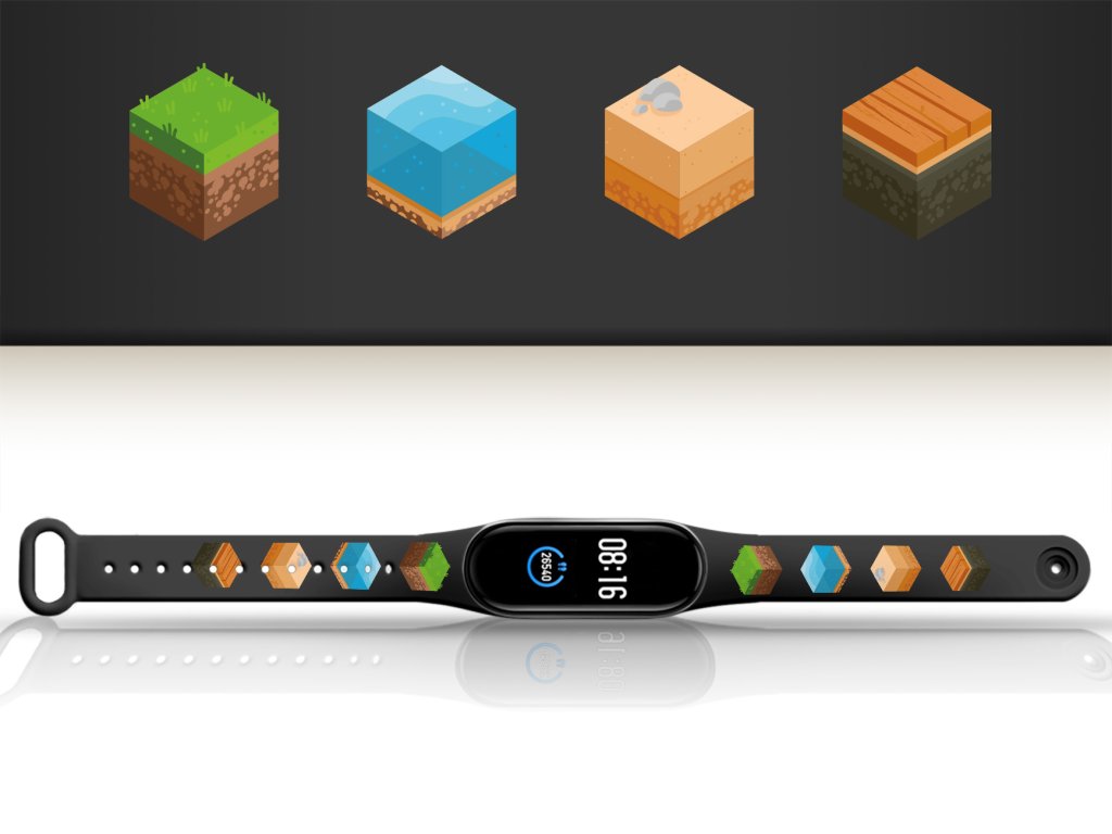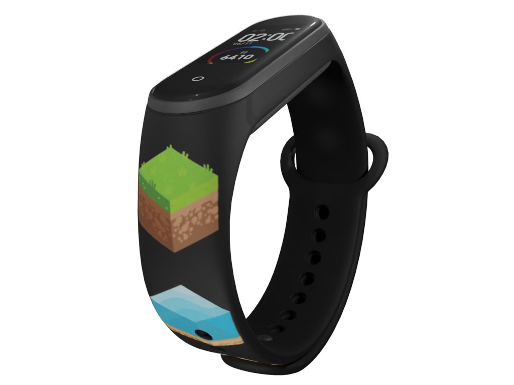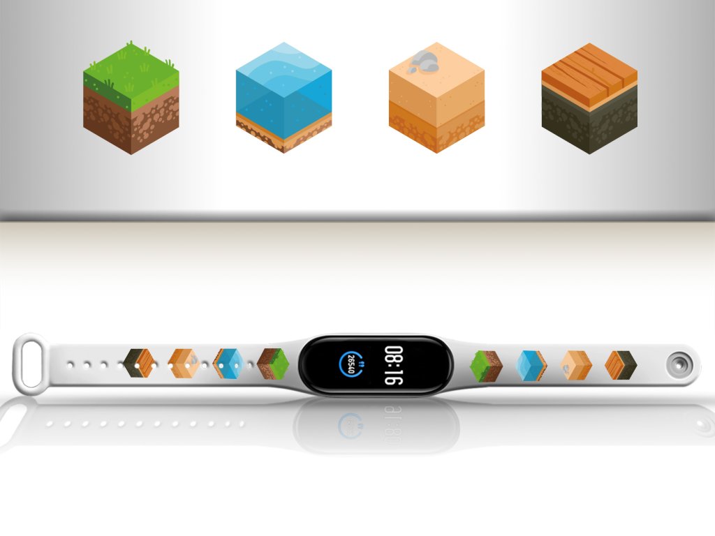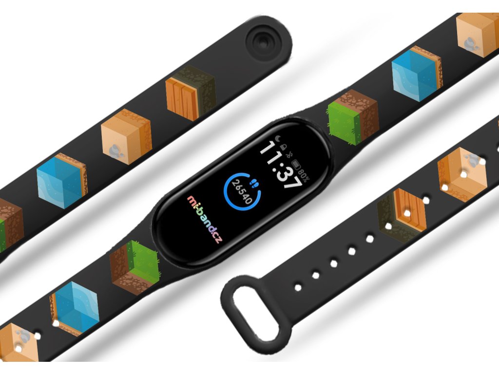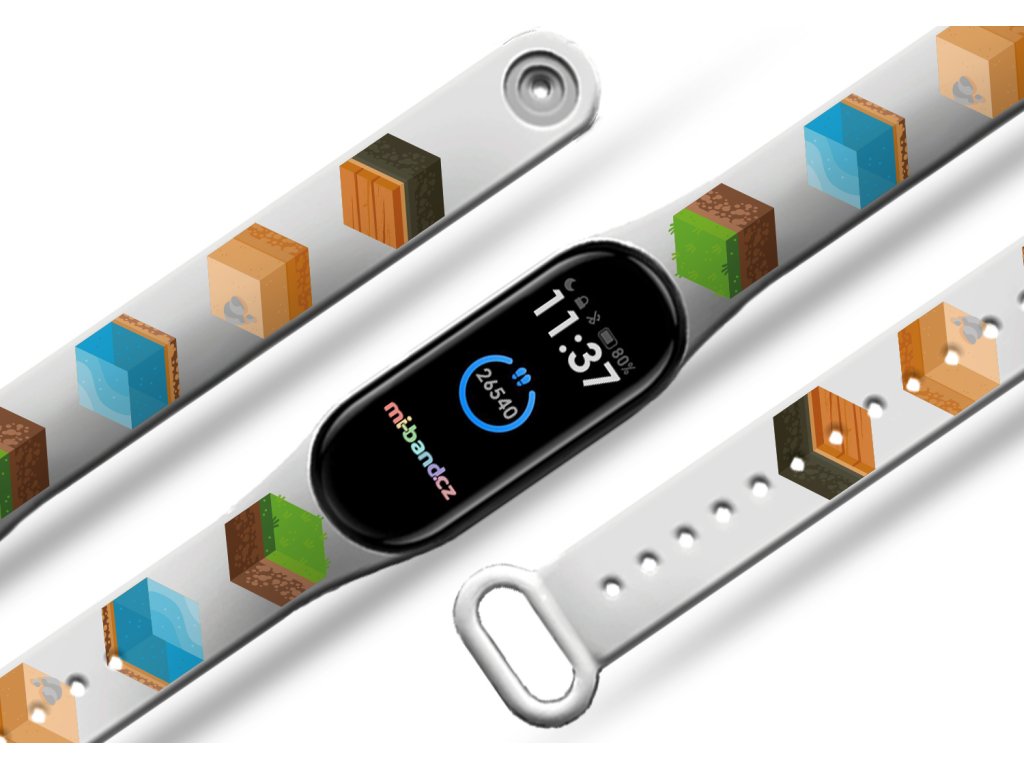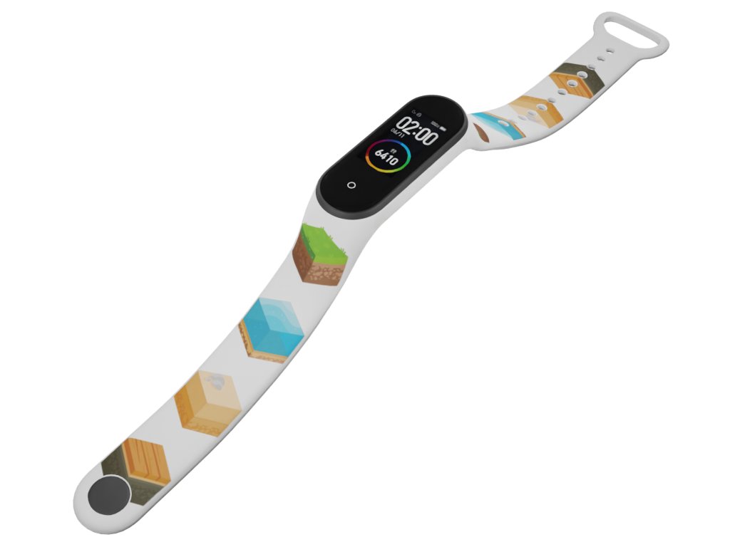 Bílý náhradní náramek pro Xiaomi Mi band s potiskem Minecraft světa. Legendární kostičky v neotřelém grafickém podání. Taky ti na tomto náramku pro Mi Band 3, 4, 5, 6 a 7 tolik chybí diamant?