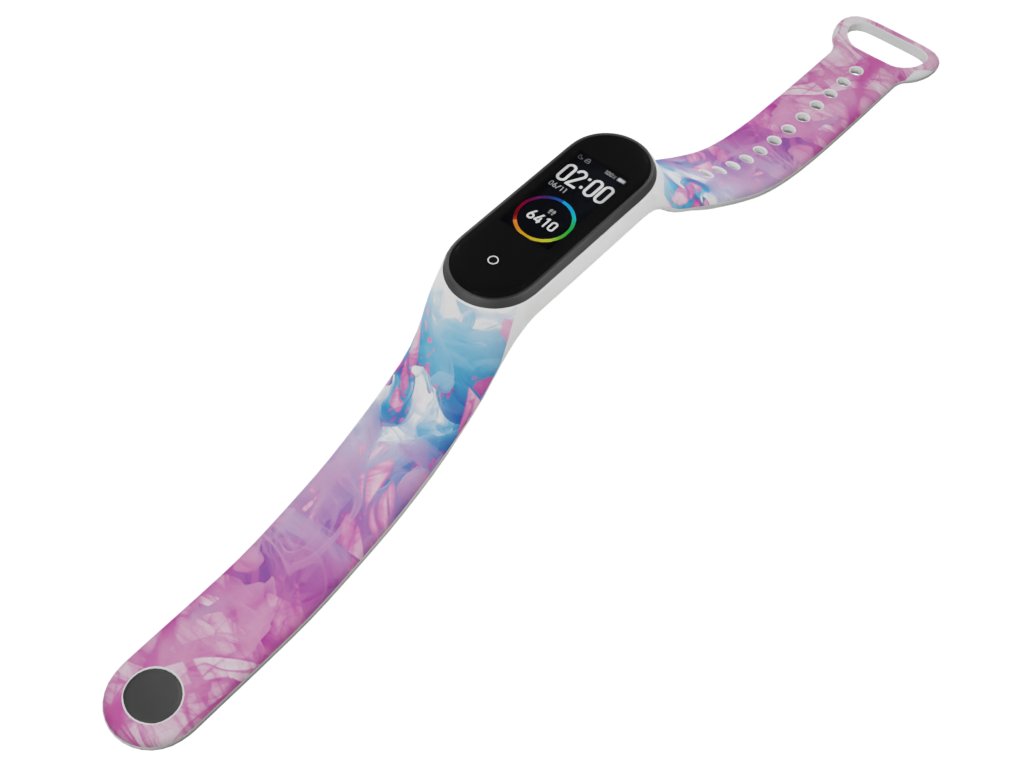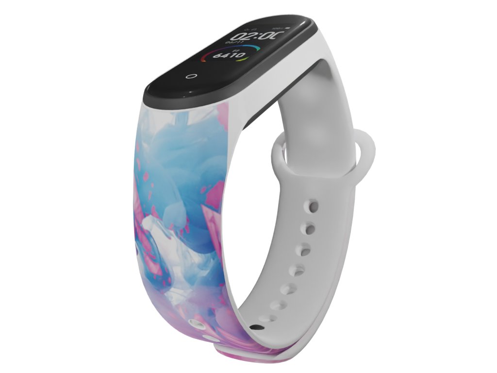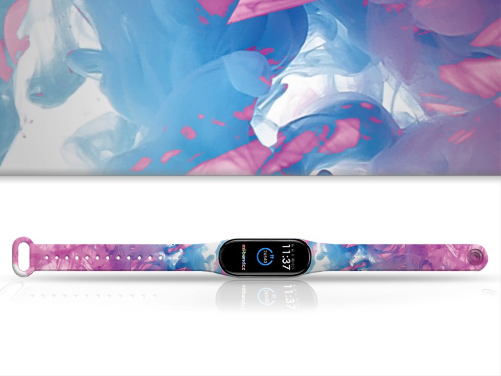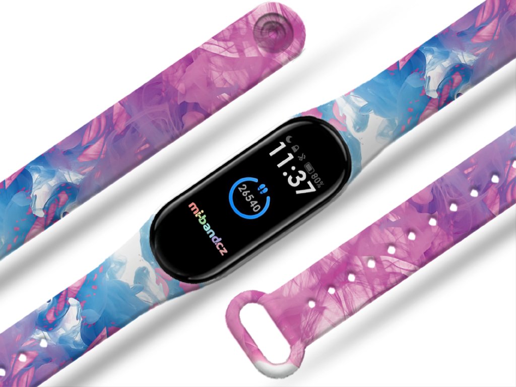 Bílý náhradní náramek pro Xiaomi Mi band s potiskem růžového a modrého kouře.