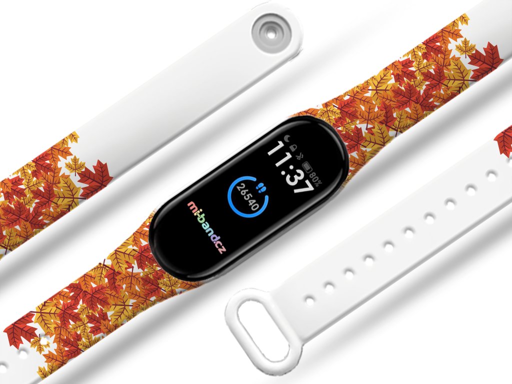 Díky vlastní výrobě i tiskům máme buď skladem nebo vyrobíme a expedujeme obratem. Řemínky pro vás pečlivě a s láskou zabalíme.  Náhradní náramek Mi band 3/4/5/6/7 Kupa listí