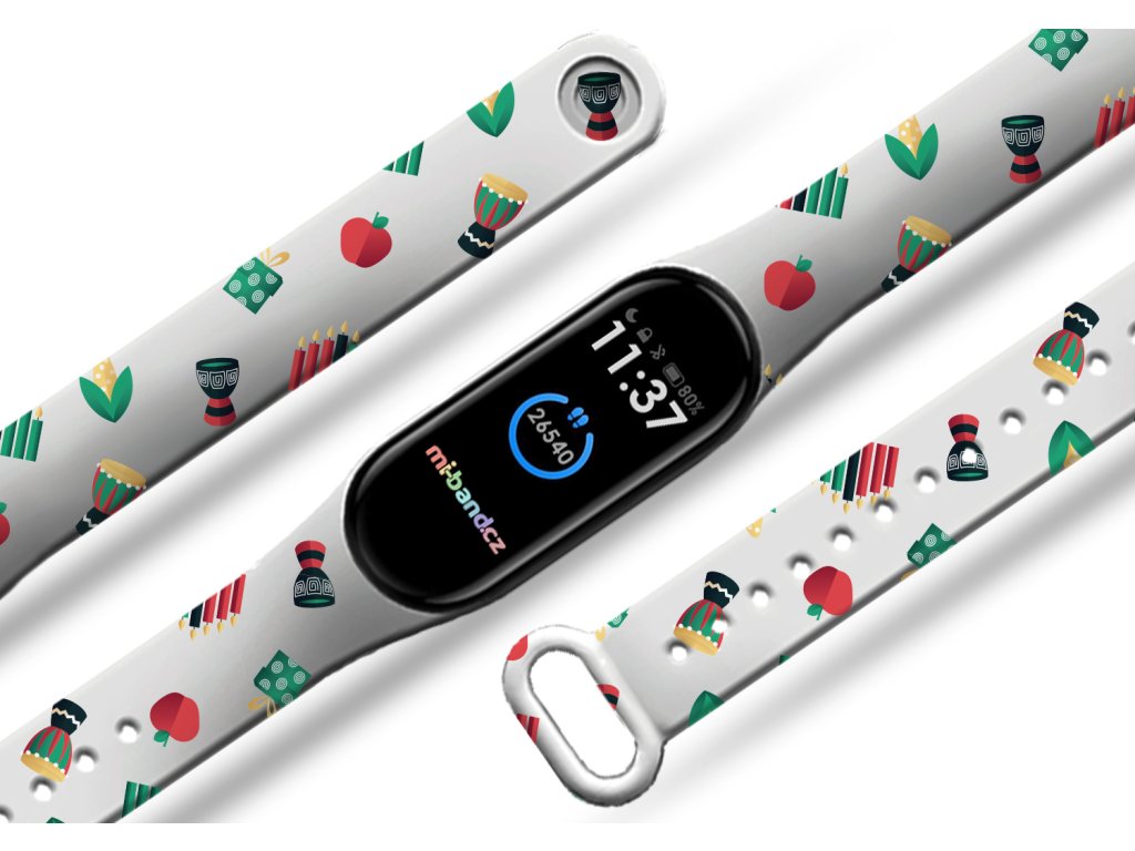 Řemínky pro vás vyrábíme v Ústí nad Labem. Od namíchání barev, přes výrobu samotného řemínku až po finální potisk, který lze i na přání. Náhradní náramek Mi band 3/4/5/6/7 Kwanzaa