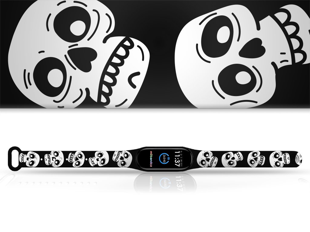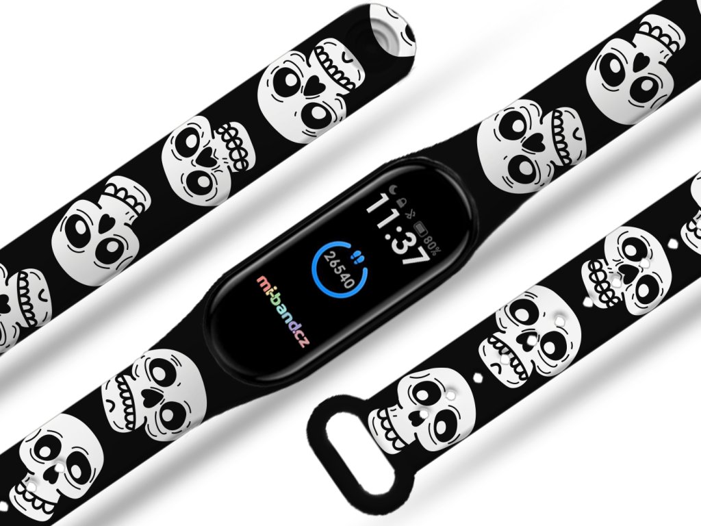 Díky vlastní výrobě i tiskům máme buď skladem nebo vyrobíme a expedujeme obratem. Řemínky pro vás pečlivě a s láskou zabalíme.  Náhradní náramek Mi band 3/4/5/6/7 Lebky