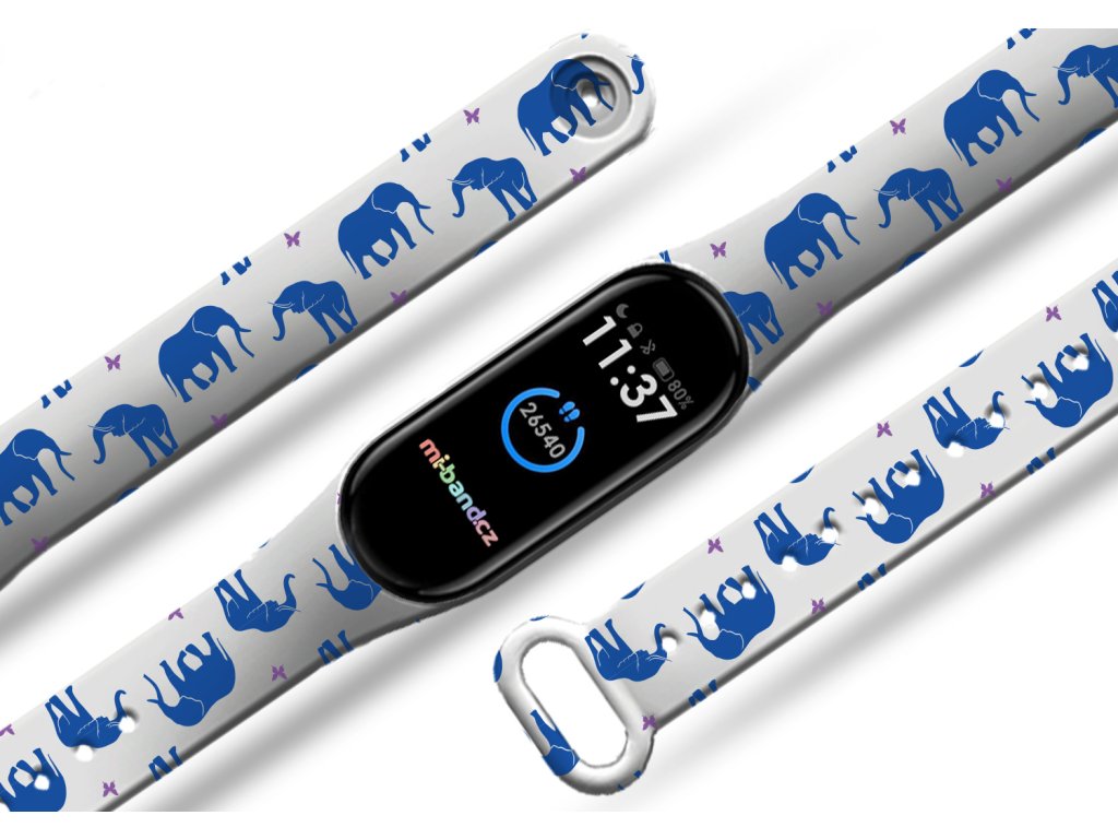 Vytvořte si jedinečný kousek, který nebude mít nikdo jiný. Napište nám své přání a my se postaráme o návrh i jeho realizaci na řemínek. Náhradní náramek Mi band 3/4/5/6/7 Modří sloni