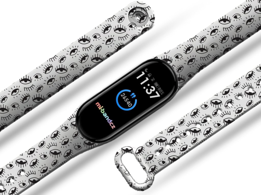 Díky vlastní výrobě i tiskům máme buď skladem nebo vyrobíme a expedujeme obratem. Řemínky pro vás pečlivě a s láskou zabalíme.  Náhradní náramek Mi band 3/4/5/6/7 Oči