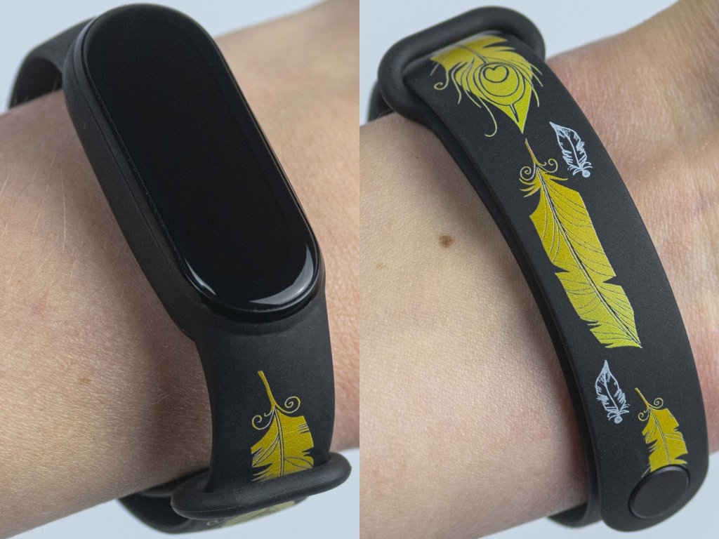 Potištěný náhradní náramek naší vlastní výroby s designem "Peří žluté" pro obvod zápěstí 13 - 21 cm.