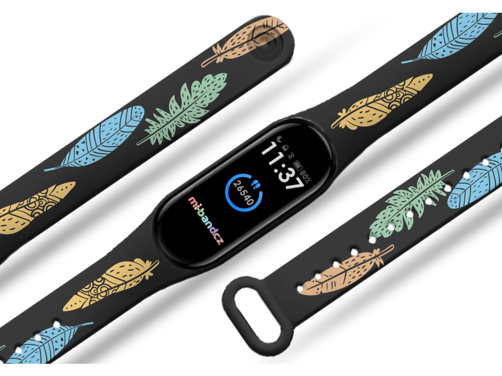 Díky vlastní výrobě i tiskům máme buď skladem nebo vyrobíme a expedujeme obratem. Řemínky pro vás pečlivě a s láskou zabalíme.  Náhradní náramek Mi band 3/4/5/6/7 Peří