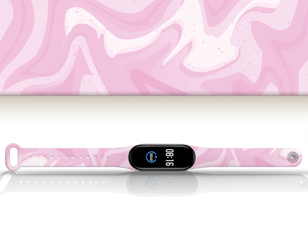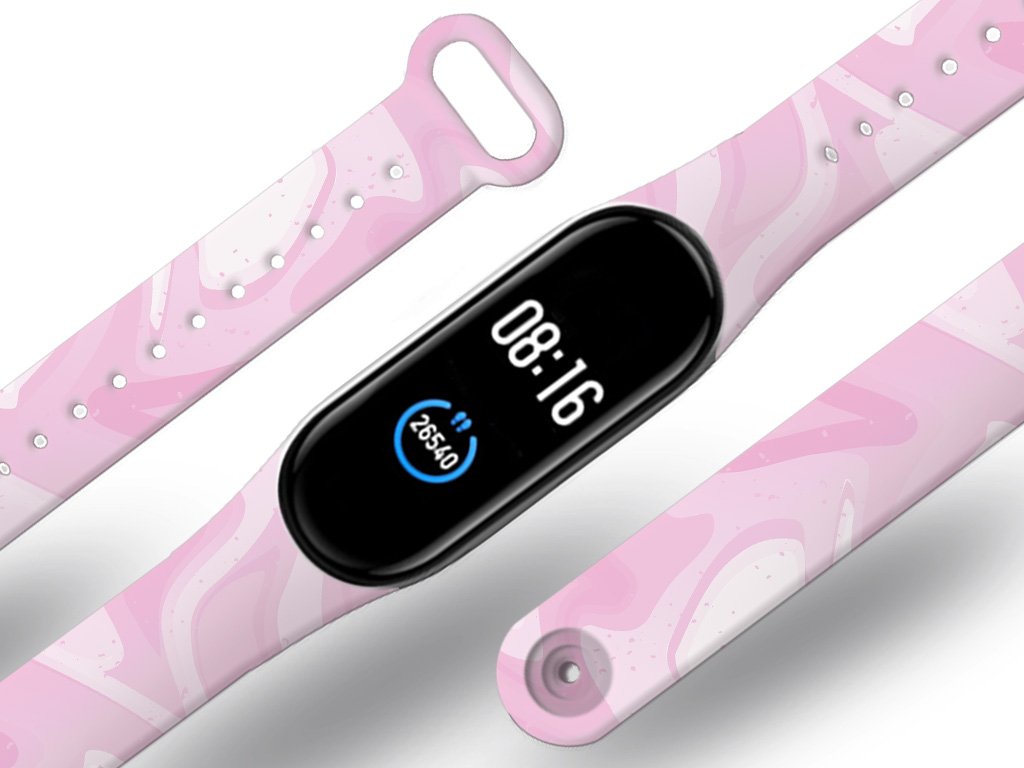 Řemínky pro vás vyrábíme v Ústí nad Labem. Od namíchání barev, přes výrobu samotného řemínku až po finální potisk, který lze i na přání. Náhradní náramek Mi band 3/4/5/6/7 Růžová mlha