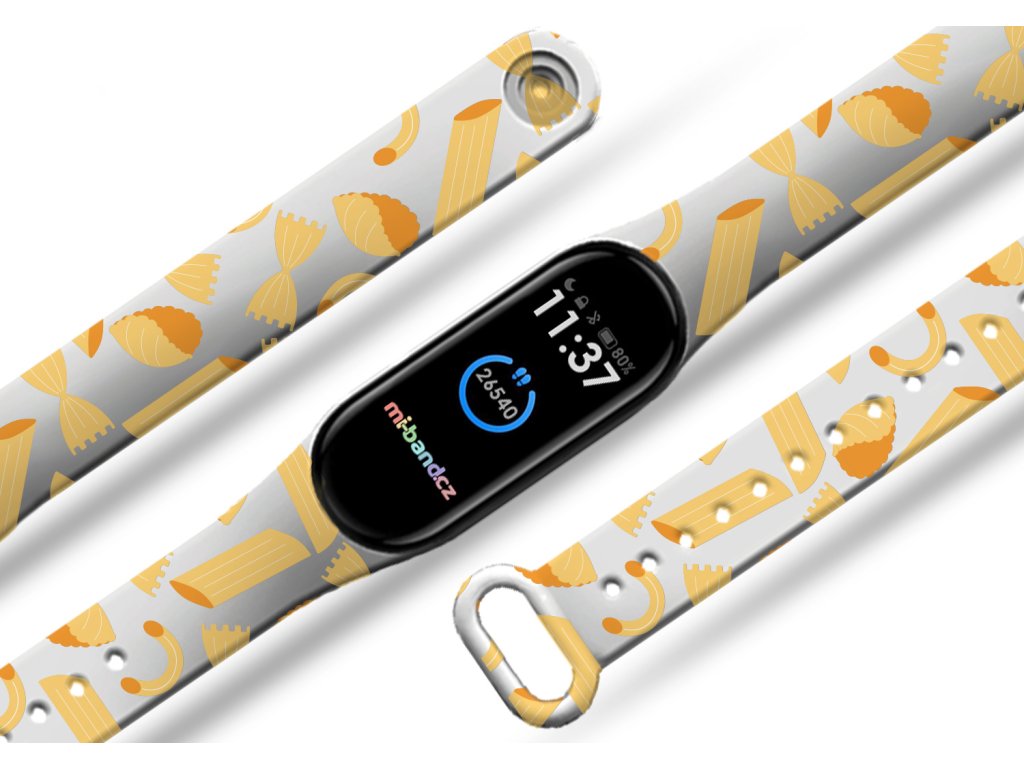 Díky vlastní výrobě i tiskům máme buď skladem nebo vyrobíme a expedujeme obratem. Řemínky pro vás pečlivě a s láskou zabalíme.  Náhradní náramek Mi band 3/4/5/6/7 Těstoviny