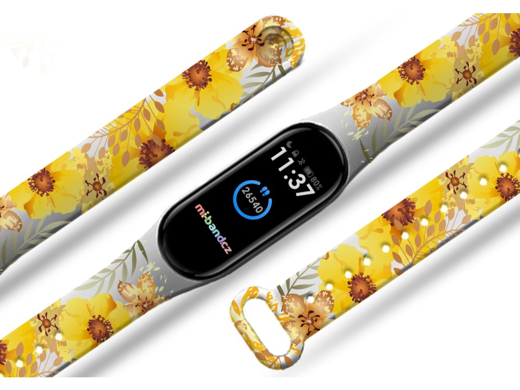 Díky vlastní výrobě i tiskům máme buď skladem nebo vyrobíme a expedujeme obratem. Řemínky pro vás pečlivě a s láskou zabalíme.  Náhradní náramek Mi band 3/4/5/6/7 Žlutá louka