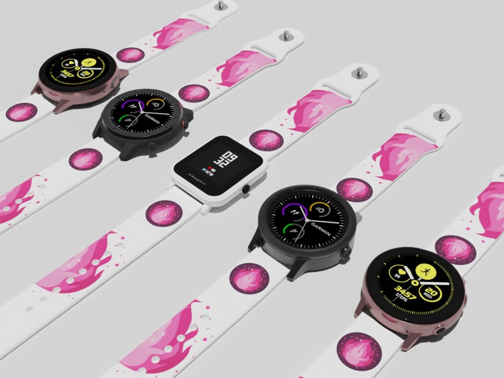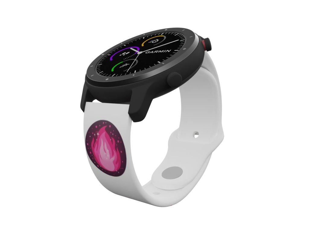 Bílý náhradní řemínek pro chytré hodinky s potiskem zářivě růžového plamene. Ten pravý plamen lásky. Dostaňte pod kontrolu nespoutaný živel ohně.