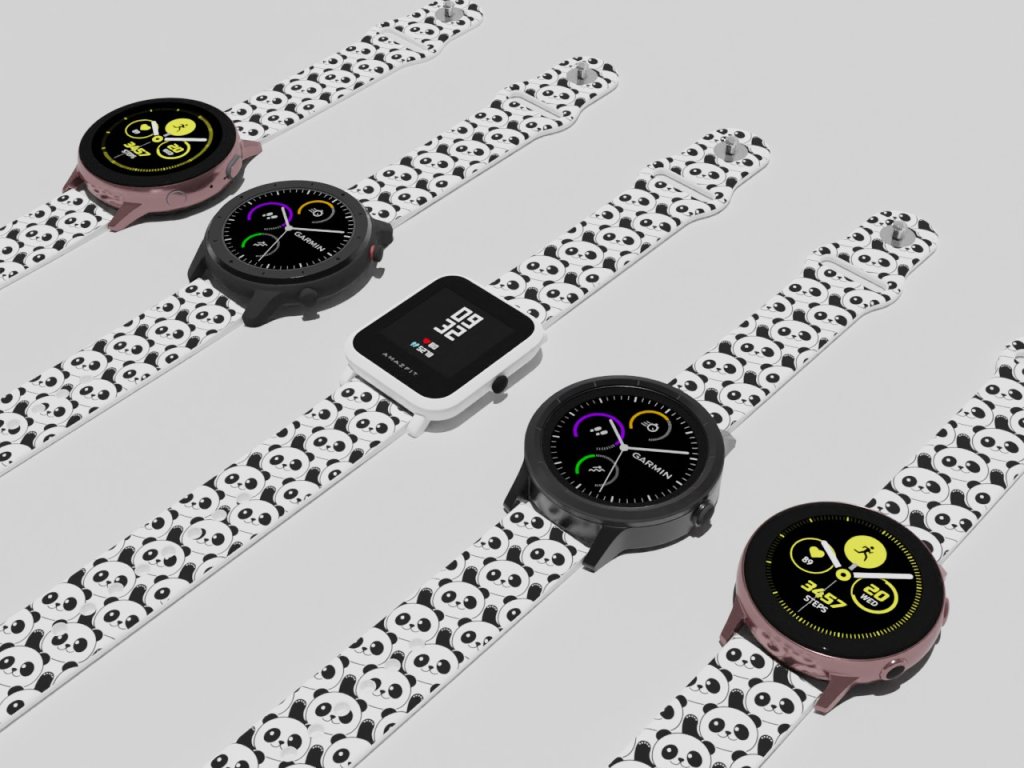 Bílý náhradní řemínek pro chytré hodinky s potiskem roztomilých pand.