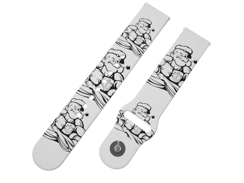 Bílý náhradní řemínek pro chytré hodinky s černým potiskem Pepka Námořníka.