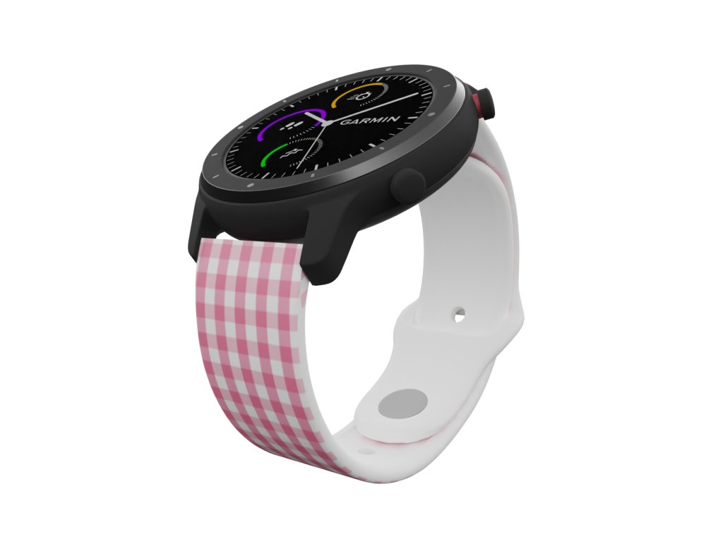 Bílý náhradní řemínek pro chytré hodinky s růžovým potiskem vzoru pepito.