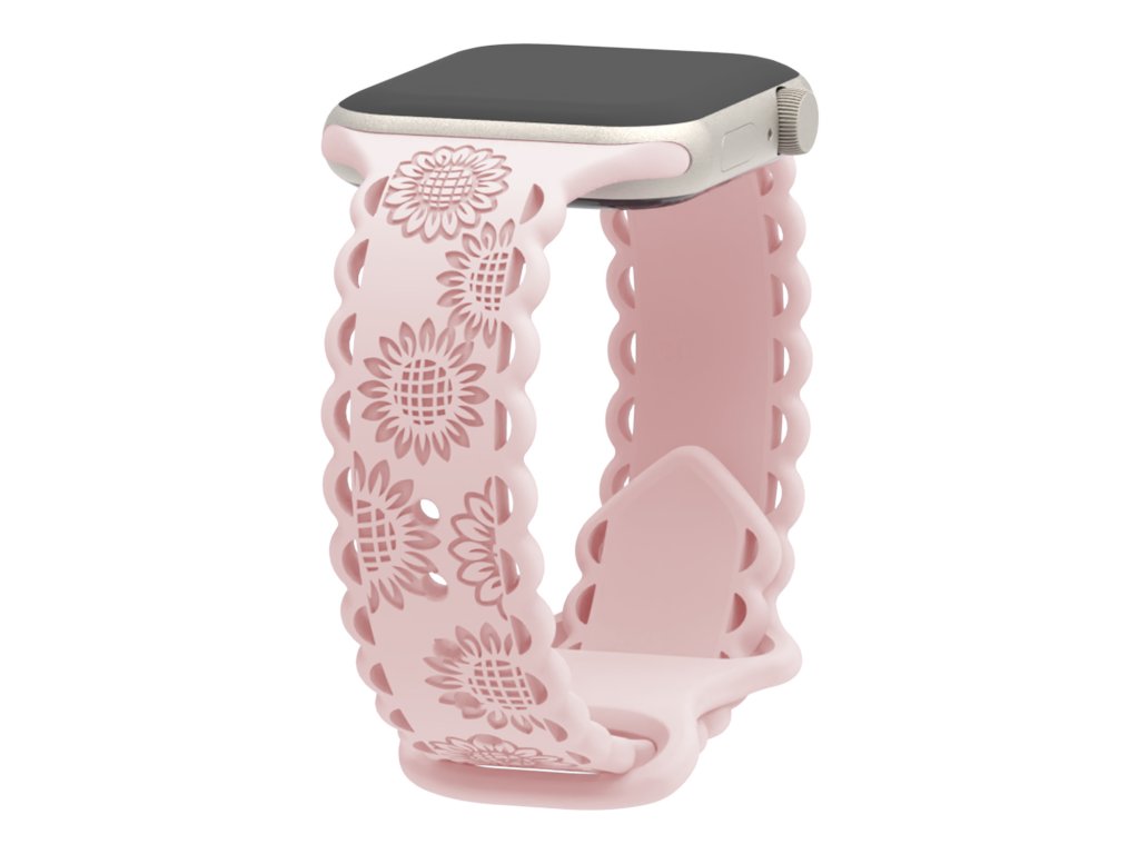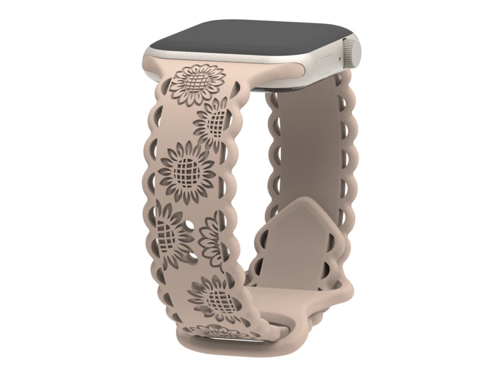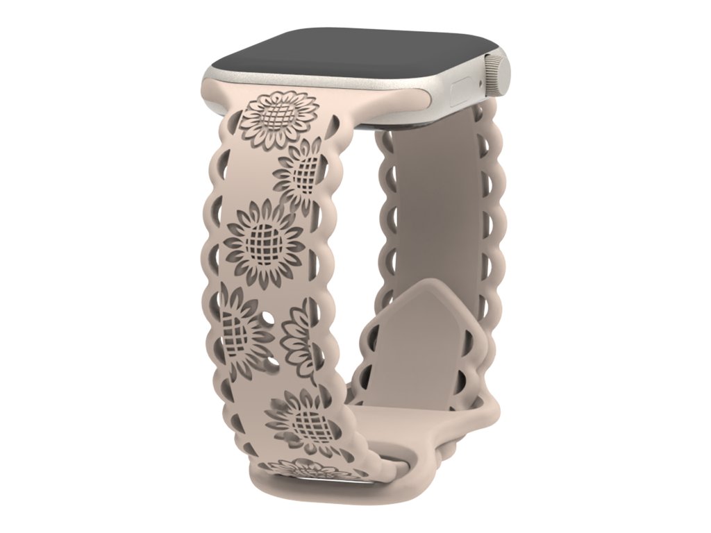 Řemínky pro Apple Watch hodinky s gravírovaným vzorem slunečnic a perforováním po stranách v různých barevných variantách.