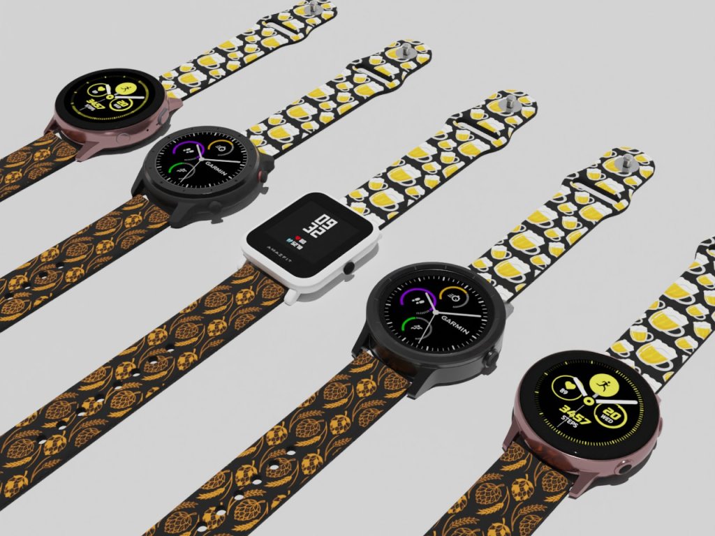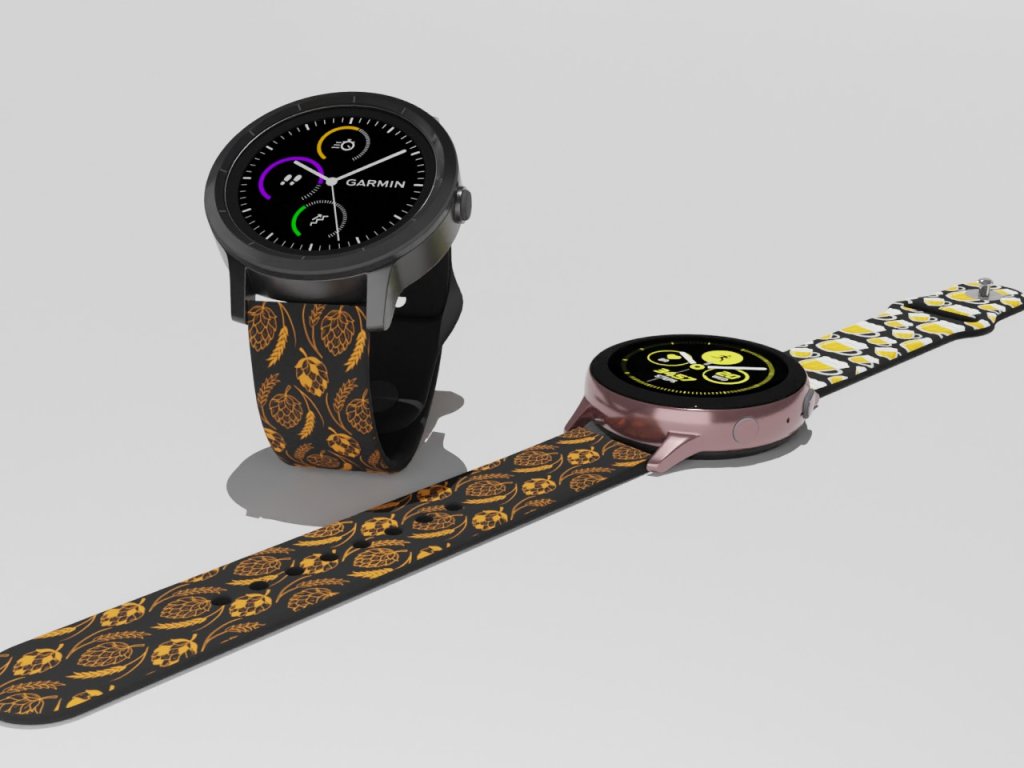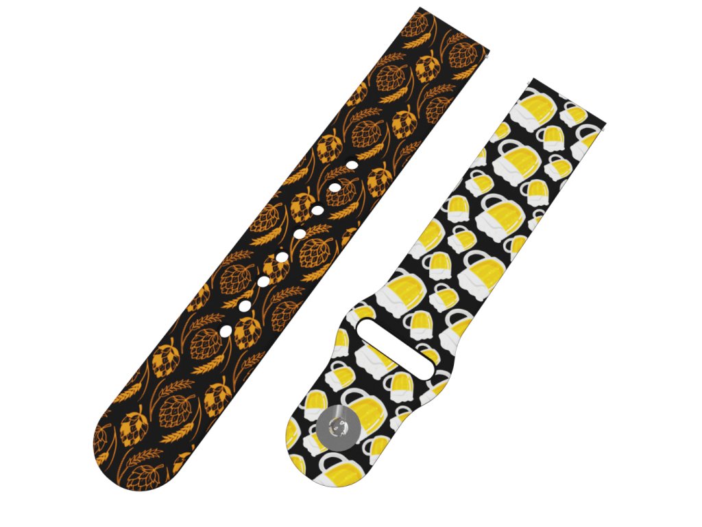 Černý náhradní řemínek pro chytré hodinky s potiskem chmele a piva.