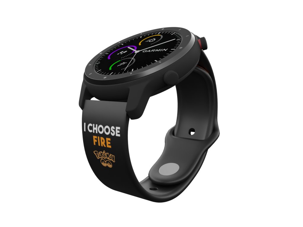 Černý náhradní řemínek pro chytré hodinky s potiskem Pokemonů. Volím si tebe Charizarde.