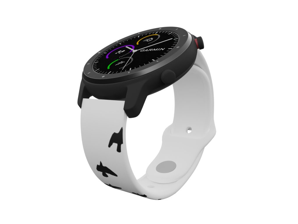 Bílý náhradní řemínek pro chytré hodinky s potiskem černých ptáčků.