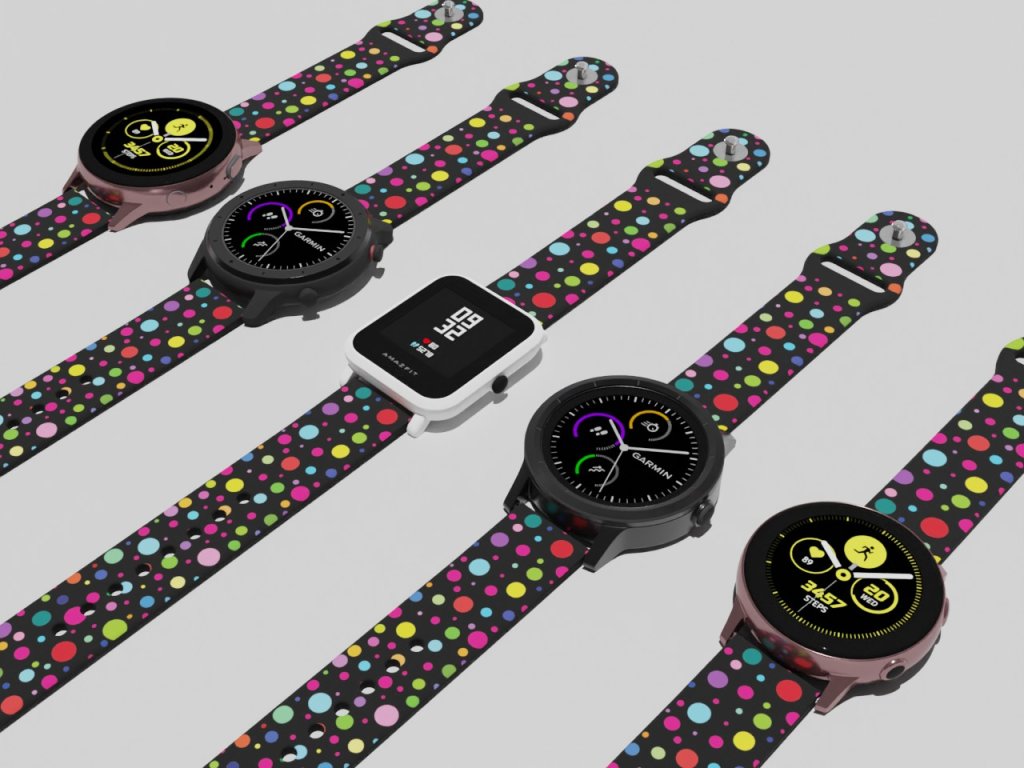 Černý náhradní řemínek s barevnými puntíky. Zamilujte se do barevné palety malých