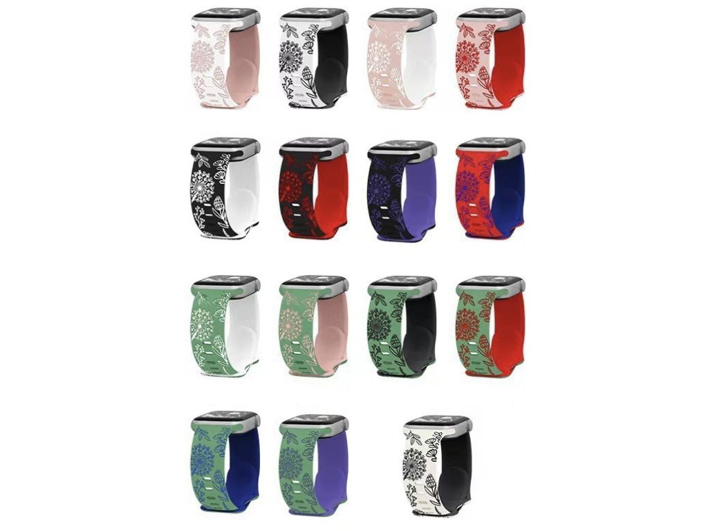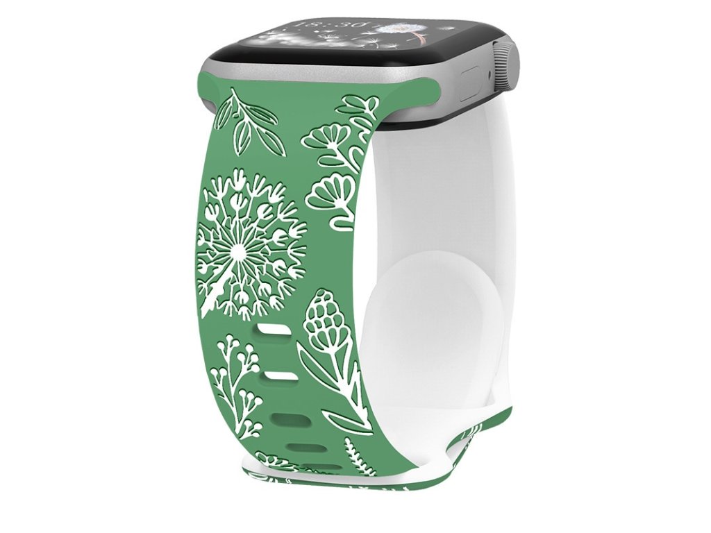 Řemínky pro Apple Watch hodinky 38/40/41/42mm(Serie 10) s gravírovaným vzorem pampelišek v různých barevných variantách.