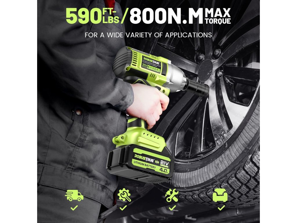 - 【Vysoký otáčecí moment 800 N.M】 Akumulátorový rázový šroubovák nabízí maximální točivý moment 800 N.m a maximální rychlost 2400 ot/min, což z něj dělá akumulátorový rázový šroubovák s nejvyšším točivým momentem. Robustní rázový šroubovák k vyšroubování nebo zašroubování matic na automobilech nebo motocyklech a šroubů na dveřích nebo stěnách