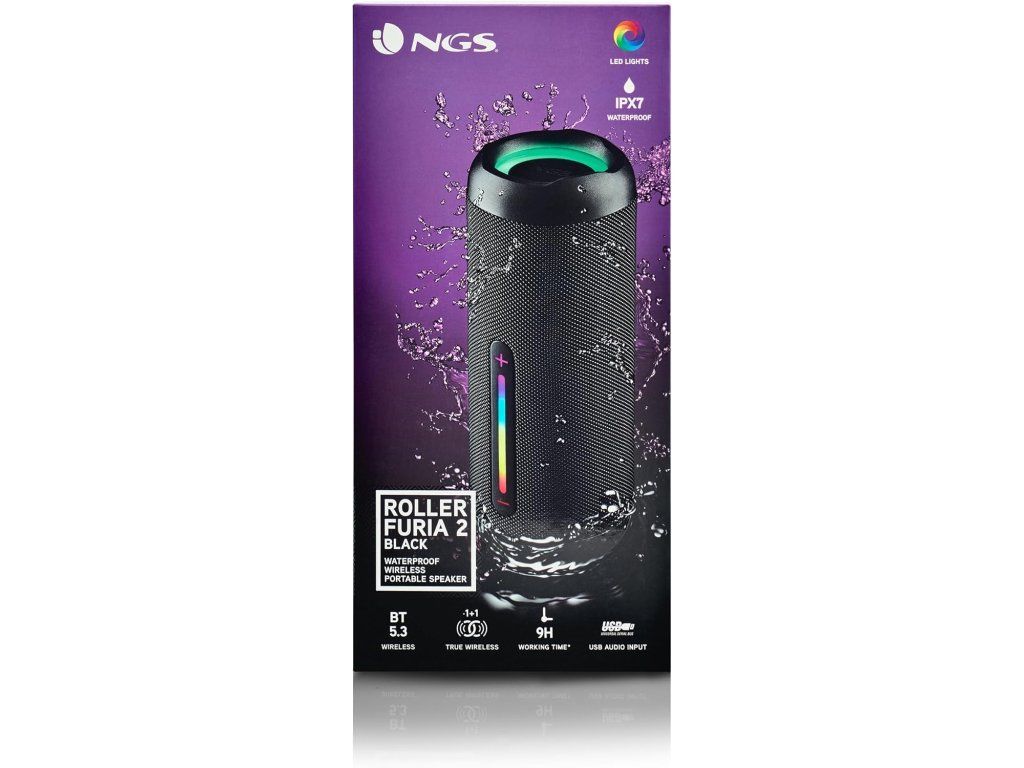 NGS Roller Furia 2 Black – bezdrátový Bluetooth reproduktor (30 W, IPX7)