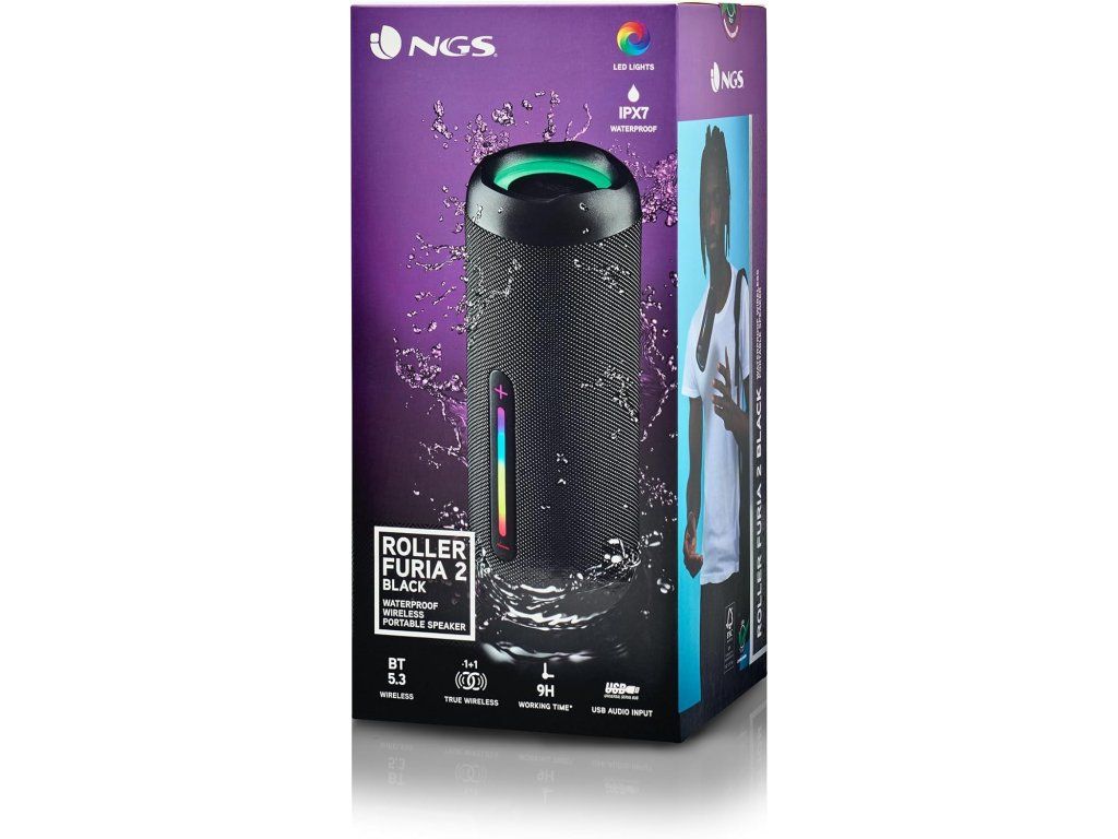 NGS Roller Furia 2 Black je přenosný Bluetooth reproduktor navržený pro venkovní i domácí použití. Nabízí solidní výkon 30 W, odolnou konstrukci a voděodolnost IPX7, takže zvládne déšť, bazén i kempování bez stresu.