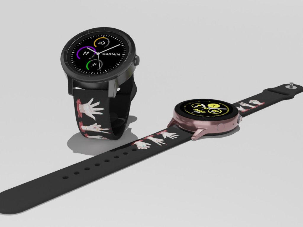 Černý náhradní řemínek pro chytré hodinky s potiskem rukou ze záhrobí.