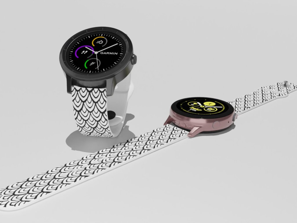 Bílý náhradní řemínek pro chytré hodinky s potiskem rybích šupinek.