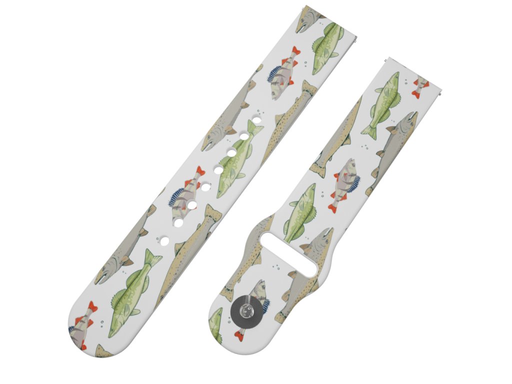 Bílý náhradní řemínek pro chytré hodinky s potiskem ryb. Okoun, štika i kapr. Pro rybáře i rybaříčky.