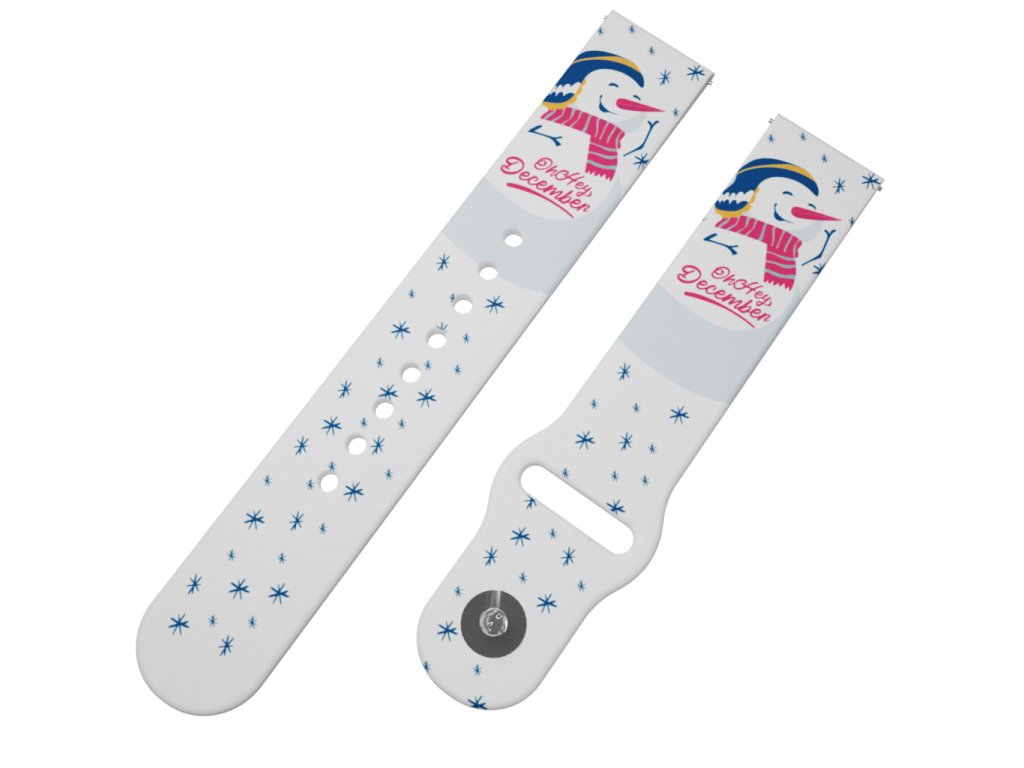 Potištěný univerzální řemínek naší vlastní výroby ve velikosti 22 mm s designem "SNĚHULÁK" pro obvod zápěstí 15 - 23 cm.