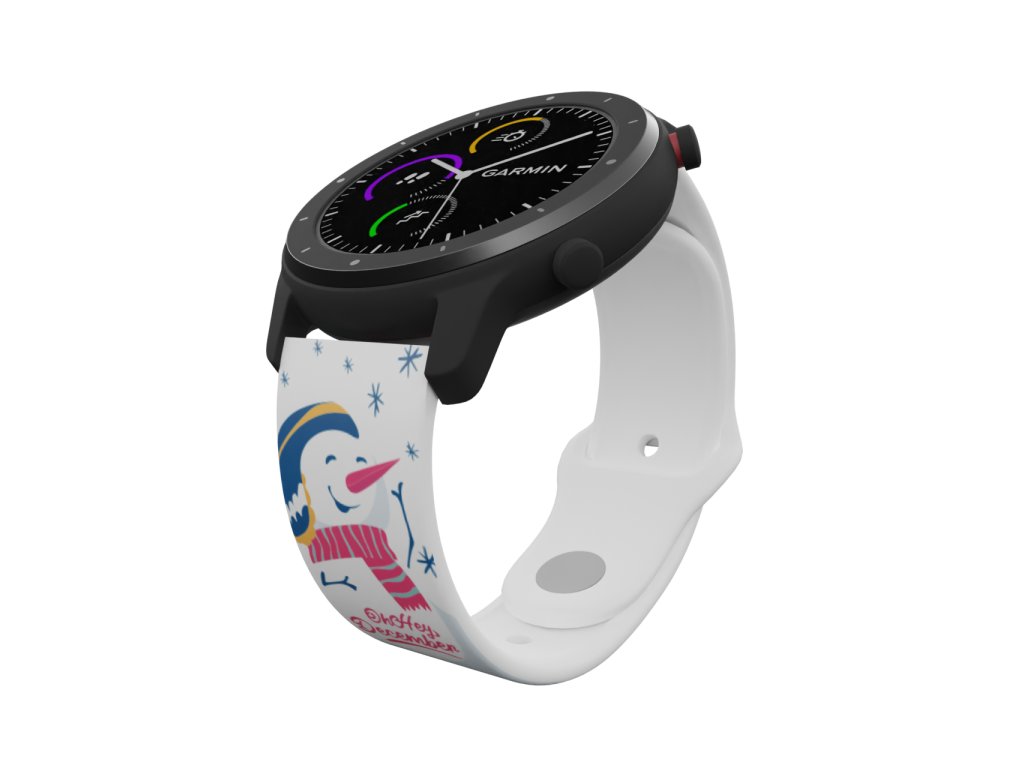Bílý náhradní řemínek pro chytré hodinky s potiskem sněhuláka. Zimní radovánky v plném proudu.