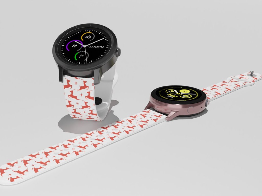 Bílý náhradní řemínek pro chytré hodinky s potiskem červených sobíků. Vzhlížejte vzhůru a čekejte na své dárky.