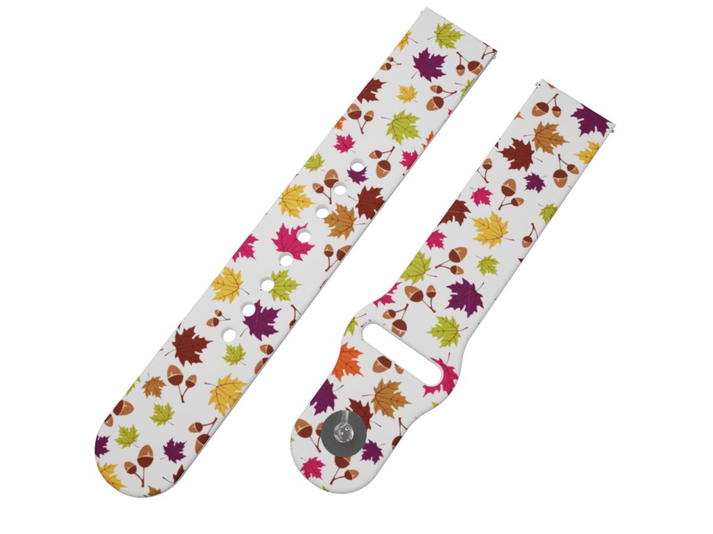 Bílý náhradní řemínek pro chytré hodinky s potiskem barevného spadaného listí.