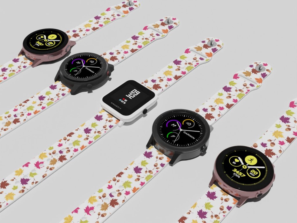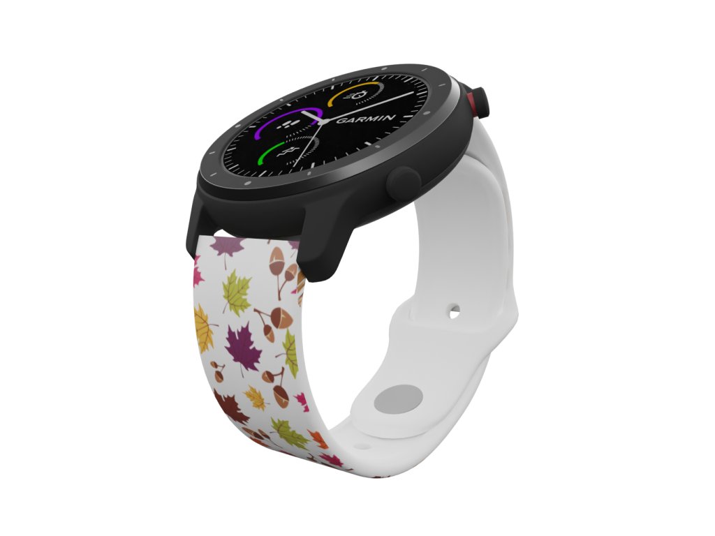 Bílý náhradní řemínek pro chytré hodinky s potiskem barevného spadaného listí. Nechte se unést atmosférou podzimních dní.