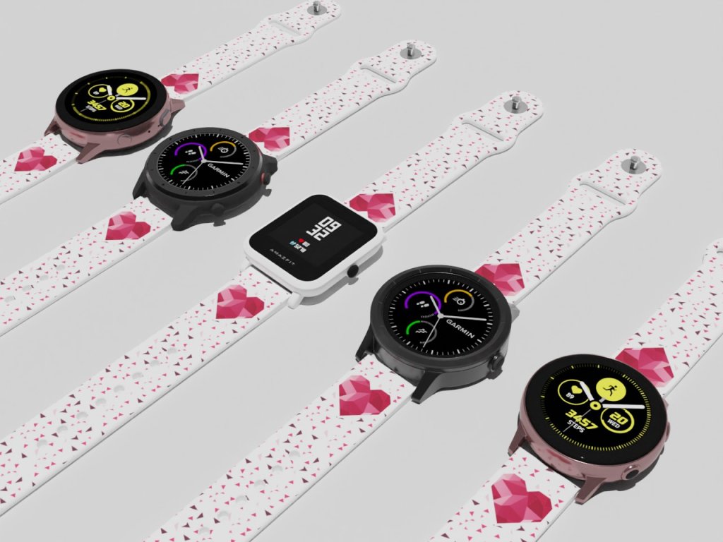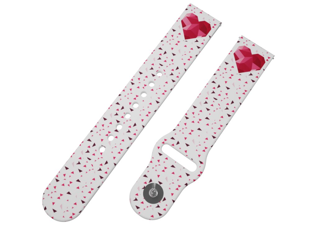 Bílý náhradní řemínek pro chytré hodinky s potiskem geometrického srdce.