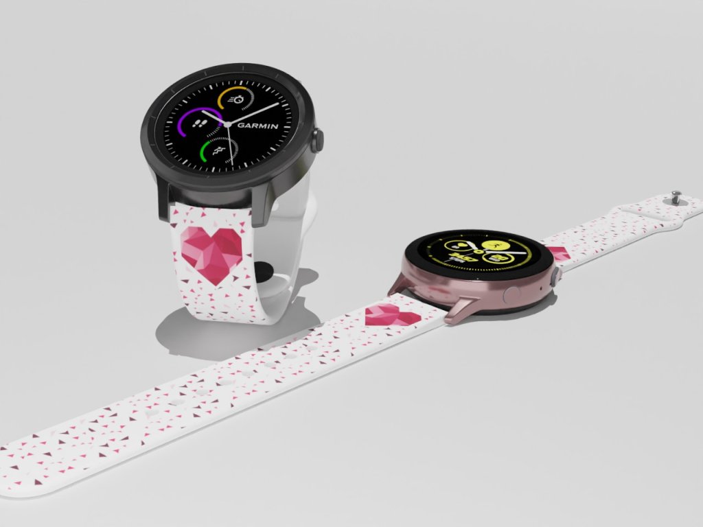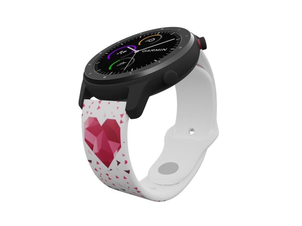 Bílý náhradní řemínek pro chytré hodinky s potiskem geometrického srdce. To pravé pro zamilované.