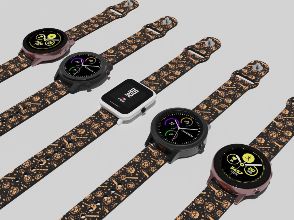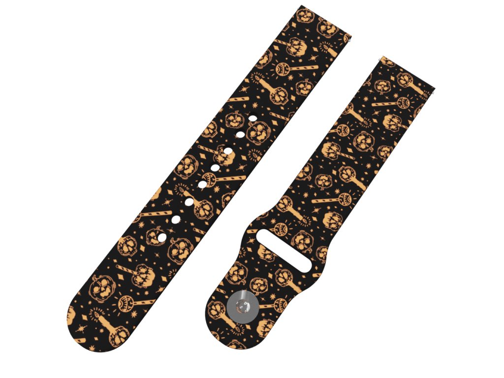 Černý náhradní řemínek pro chytré hodinky s potiskem strašidelných dýní.