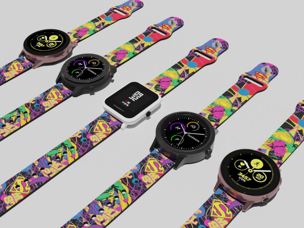 Výrazné barevné graffiti jako celopotisk pro pásek na vaše chytré hodinky.