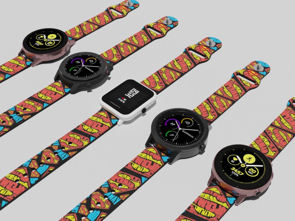 Černý náhradní řemínek s barevným potiskem s DC Comics Superman. Barevné nápisy jako celopotisk pro pásek na vaše chytré hodinky. Buďte originální a nebojte se odvázat.